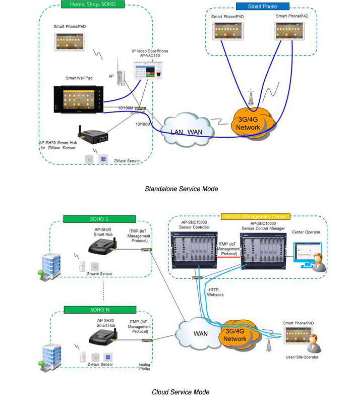 AP-SH30 ½º¸¶Æ® Çãºê Ŭ¶ó¿ìµå ½Ã½ºÅÛÀº ZWave ¼¾¼ µð¹ÙÀ̽º¸¦ À§ÇÑ IP ¿¬°á ÀåÄ¡ÀÔ´Ï´Ù. ÀÌ ½Ã½ºÅÛÀº ´Ù¾çÇÑ È¯°æ¿¡¼ÀÇ È®À强À» À§Çؼ LAN ÀÎÅÍÆäÀ̽º¸¦ »ç¿ëÇÕ´Ï´Ù. AP-SH30 ½Ã½ºÅÛ °ú ½º¸¶Æ®ÆùÀ» À§ÇÑ ¾îÇø®ÄÉÀÌ¼Ç ¼ÒÇÁÆ®¿þ¾î´Â ¸ð¼Ç ¼¾¼, Àüµî½ºÀ§Ä¡, ¿ÂµµÁ¶Àý±â µî ´Ù¾çÇÑ ZWave ¼¾¼ µð¹ÙÀ̽º¸¦ ÀÎÅÍ³Ý °°Àº ³×Æ®¿öÅ© ÅëÇØ¼ Á¦¾îÇϴµ¥ »ç¿ëÇÒ ¼ö ÀÖ½À´Ï´Ù. ±×¸®°í AP-SH30 ½Ã½ºÅÛÀº ´Ù¾çÇÑ Á¦Á¶»ç¿¡¼ »ý»êµÈ ZWave ¼¾¼ µð¹ÙÀ̽º¸¦ ȣȯ Áö¿øÇÒ ¼ö Àֱ⠶§¹®¿¡ ȨÀ̳ª, ¾Æ¿ôµµ¾î µî ´Ù¾çÇÑ È¯°æ¿¡¼ ½±°Ô »õ·Î¿î ¼¾¼ µð¹ÙÀ̽º¸¦ Ãß°¡ ¼³Ä¡ ÇÒ¼ö ÀÖ½À´Ï´Ù. ½º¸¶Æ® ¼¾¼ ³×Æ®¿öÅ©¸¦ À§ÇÑ ÅäÅÐ ¼Ö·ç¼Ç ( ½º¸¶Æ®È¨, ½º¸¶Æ® ½ÃÅ¥¸®Æ¼ µî) ¾ÖµåÆÅÅ×Å©³î·¯ÁöÀÇ ½º¸¶Æ® Ȩ³×Æ®¿öÅ© Àåºñ ¼Ö·ç¼ÇÀº ZWave ¼¾¼ Çãºê ½Ã½ºÅÛ, IP ±â¹ÝÀÇ ºñµð¿À µµ¾îÆù ½Ã½ºÅÛ, IP ±â¹ÝÀÇ ½º¸¶Æ® ºñµð¿À ¿ùÆÐµå, °æºñ½ÇÀ» À§ÇÑ ºñµð¿À Àüȱ⠽ýºÅÛ, ½º¸¶Æ®È¨ ¾îÇø®ÄÉÀÌ¼Ç ¼ÒÇÁÆ®¿þ¾î, SIP ±â¹ÝÀÇ IP ÅÚ·¹Æ÷´Ï ¼Ö·ç¼Ç, ´ë¿ë·® µµ¾î¿¢¼¼½º Á¦¾î ½Ã½ºÅÛµîÀ¸·Î ±¸¼ºµÇ¸ç, IP ±â¹ÝÀ¸·Î ¼³°èµÇ¾î È®À强ÀÌ ¿ëÀÌÇÏ°Ô ¼³°èµÇ¾ú½À´Ï´Ù. ZWave ¼¾¼¸¦ À§ÇÑ ¿ÜºÎ ¾ÈÅ׳ª ¼Ö·ç¼Ç AP-SH30 ½º¸¶Æ® Çãºê Ŭ¶ó¿ìµå ½Ã½ºÅÛÀº ±âº»ÀûÀ¸·Î ¿ÜÀå¾ÈÅ׳ª¸¦ ¿¬°áÇÏ¿© »ç¿ë ÇÒ ¼ö ÀÖµµ·Ï ¼³°èµÇ¾ú½À´Ï´Ù. »ç¿ëȯ°æ¿¡ µû¶ó ¾ÈÅ׳ª ±æÀ̸¦ ¼±Åà ÇÒ ¼ö ÀÖÀ¸¸ç ½Ç³» ¹× ±Ù°Å¸®¿ëÀ¸·Î »ç¿ëµÇ´Â °æ¿ì´Â ¼ô ¾ÈÅ׳ª¸¦ »ç¿ëÇÕ´Ï´Ù. AP-Z-ANT0 ´Â ¼ô¾ÈÅ׳ª, AP-Z-ANT1 ´Â 2¹ÌÅÍ ±æÀÌÀÇ ¾ÈÅ׳ª ÀÔ´Ï´Ù. Æß¿þ¾î ¾÷±×·¹ÀÌµå °¡´ÉÇÑ ±¸Á¶ AP-SH30ÀÇ °í¼º´É RISC CPU ´Â programmable ±¸Á¶À̱⠶§¹®¿¡ Áö¼ÓÀûÀÎ ±â´É°³¼±À̳ª º¯°æ, Ãß°¡°¡ °¡´ÉÇÕ´Ï´Ù. ±â´ÉÃß°¡, º¯°æÀÌ ÀÖÀ» ¶§¸¶´Ù Á÷Á¢ ȨÆäÀÌÁö¿¡¼ ´Ù¿î¹Þ°Å³ª ÀÚµ¿ ¾÷±×·¹ÀÌµå ¿É¼ÇÀ» ÁöÁ¤Çصθé, º°µµ ¼ö°í¸¦ ÇÒ ÇÊ¿ä¾øÀÌ ÃÖ½ÅÀÇ ±â´ÉÀ» ÀÌ¿ëÇÒ ¼ö ÀÖ½À´Ï´Ù. Smart Web Manager ±â´É AP-SH30 ½Ã½ºÅÛÀº ±âº»ÀûÀ¸·Î ½º¸¶Æ® Çãºê ½Ã½ºÅÛÀÇ °ü¸®¸¦ À§Çؼ À¥±â¹ÝÀÇ ¸Å´ÏÁ® ÇÁ·Î±×·¥ÀÌ Å¾ÀçµÇ¾îÀÖ½À´Ï´Ù. »ç¿ëÀÚ´Â PC, ½º¸¶Æ®Æù, Å×ºí¸´ Àåºñ¸¦ ÅëÇØ¼ AP-SH30 ½Ã½ºÅÛÀ» ¼Õ½±°Ô °ü¸® Á¦¾îÇÒ¼ö ÀÖµµ·Ï ¼³°èµÇ¾ú½À´Ï´Ù. ¾ÖµåÆÅÀÇ ´Ù¾çÇÑ VoIP ¹× ºñµð¿À ¼Ö·ç¼Ç µîÀº Çѱ¹Àº ¹°·Ð, ¼¼°è ½ÃÀå¿¡¼ ±× ¼º´É°ú ¾ÈÁ¤¼ºÀ» ÀÎÁ¤¹Þ°í ÀÖ½À´Ï´Ù. ¾ÖµåÆÅÀÌ ±×µ¿¾È ¿£ÅÍÇÁ¶óÀÌÁî ½ÃÀå°ú Åë½Å »ç¾÷ÀÚ ½ÃÀå¿¡¼ ½×Àº °æÇè°ú ³ëÇϿ찡 ½º¸çµé¾î ÀÖ´Â AP-SH30Àº ¾ÖµåÆÅÀÇ IP ÅÚ·¹Æ÷´Ï, ¸ÖƼ¹Ìµð¾î ¼Ö·ç¼Ç°ú ÇÔ²² Â÷¼¼´ë ¼¾¼ µð¹ÙÀ̽º Ä¿¹Â´ÏÄÉÀ̼ÇÀ» ¿ä±¸ÇÏ´Â ½º¸¶Æ® Ȩ ¹× ±â¾÷ °í°´¿¡°Ô ³ôÀº ¸¸Á·À» µå¸®´Â ¼Ö·ç¼ÇÀÌ µÉ °ÍÀÔ´Ï´Ù.