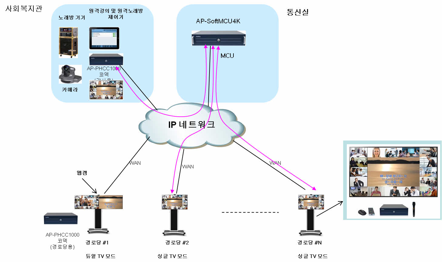 3. IP ±³È¯±â ¿Í ºñµð¿À MCU °¡ ÇϳªÀÇ Àåºñ·Î AP-ITMS1000 ±â¾÷¿ë IP ÅÚ·¹Æ÷´Ï ½Ã½ºÅÛ